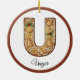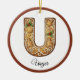Customize Christmas Gingerbread Letter U Monogram Ceramic Ornament
