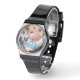 Customize it Your photo monogram black numbers Wrist Watch. Photo gift for anyone, change photo and add text.