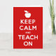Customize your message to thank your teacher for all the wonderful, creative, important, often difficult work you do. We can’t say it enough. We need you and value your many talents. This design with an apple for the teacher is a loving encouragement to take a deep breath, Keep Calm and Teach On!