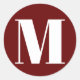 Customize monogram initial number burgundy white classic round sticker
