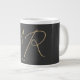 Customize Monogram Plain Grey Beige Large Coffee Mug