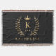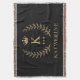 Customize Name & Initial Black White Gold Monogram Throw Blanket