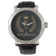 Customize Name & Initial Black White Gold Monogram Watch