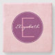 Customize Purple Monogram Circle on Pink Polka Dot Stone Coaster