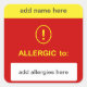 CUSTOMIZE THIS ~ Add Name + Allergy. Square Sticker