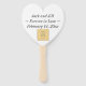 These fans were exactly as pictured. The quality is great. Perfect favor for a wedding!...I will make assembly a little easier by using a hot glue gun and finish them off with a ribbon. Beautifully printed. Crisp and clear text.