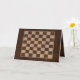 This customizable greeting card design features a rich dark wood veneer with an inlaid eight by eight square chequered board of alternating decorated brown and cream tiles representing the dark and light squares of a chessboard, draughts board or checkers board.