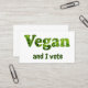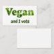 Show your vegan pride and vote your lifestyle and your values. Proclaim your vegan activism in promoting an animal-free diet and other healthy choices to politicians and other voters this election season. Make sure your issues are addressed by elected officials by letting them know where you stand politically as well as personally. You may customize this product by easily changing the tag line “and I vote” to make it say whatever you wish. Simply use the personalize feature. If you want to go further, such as changing font or background colour, adding more lines of text or your organization logo, etc., you have complete freedom by customizing the product.
