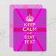 Your personalized Keep Calm saying on a vibrant hot pink union jack decor. A personalized Keep Calm style saying on a one of a kind gift. Humourous or whimsical try on your creative words on two editable lines of text. Remember to use CAPITAL letters for best results.
