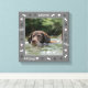 Add your own dog's photo to this square art canvas and then personalize it with your pet's name. This is a beautiful piece of artwork that frames your picture with images of hearts, paws and bones. The grey background can be changed to match your photo. What a perfect gift for dog moms and grandmas as well as all pet lovers. A perfect way to remember your dog angel!