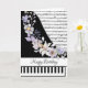 cute piano with sheet music, edit greeting, and your own accent piece (floral, etc.)