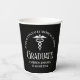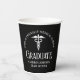 This custom black medical school graduation party paper cup features classy white typography under a medical caduceus and your college name for the class of 2026. Customize with your graduating year under the elegant calligraphy for great personalized university graduate decor for a nurse or doctor.