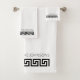 Make a bold statement in your personalized bathroom with this bold black and white Greek Key towel set. The Greek Key pattern will never go out of style. Pair this customized set with a bathroom rug and shower curtain for a complete classic-modern look. Customized Black White Modern Greek Key Bath Towel Set.