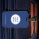 Customized Blue Business Logo Luggage Tag with a modern and minimal white and blue design. This corporate promotional travel accessory can be customized with your logo, webpage and other relevant information, making it a perfect addition to your promotional swag.
