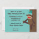 Customizable Boy Sock Monkey 5x7" birthday invitations that are just too cute! Features several sock monkeys with aqua blue hats and areas you can customize with your child's birthday party specifics!