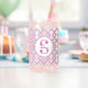 This customized monogramed pink and grey can glass is the perfect gift for any girl on your list. Whether for your bridesmaids, sister, mother, daughter, make it personal with a sweet, monogramed gift just especially for her. This design features a geometric pattern made feminine in a pink white and light grey colour scheme. Edit the template to add your letter and name. This design is fully customizable in the design tool and and can be transferred to other Zazzle products!
