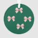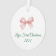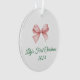 Commemorate the holiday with a personalized ornament. Featuring a pink bow design, the ornament adds a sweet touch to any tree.