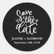Customized Clean Black Wedding Save the date Classic Round Sticker