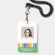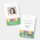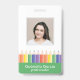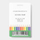 Add a cheerful touch to your school’s professional image with this modern and customizable teacher ID badge. Featuring a fun rainbow pencil illustration with green, and a clear photo template, it’s both practical and playful. Personalize the front with your name and teacher's grade, and easily add school details on the back. Perfect for preschool, kindergarten, and elementary school teachers who want to combine professionalism with a touch of creativity. This template comes with a barcode on the back. Upload your code and photo in the personalize this design section.