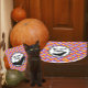 Welcome friends and trick or treaters with this Crazy Candy Corn on a purple background door mat! A spooky black bat flies by looking for something sweet to nibble on! You can personalize the text for your own clever message! Several shapes and sizes available.
