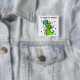 A green dragon with a blue birthday balloon and a party hat on a birthday button that's easy to customize with your own text.