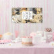 An elegant New Year's 2025 banner, customized with your names, and featuring 2 party scenes with a gold disco ball and champagne glasses, and a mask, and dancing shoes. A watercolor style in hues of gold, glitter, black and white. A modern dynamic style for your celebration.