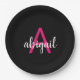 Customized Hot Pink Black Stylish Monogram Name Paper Plate