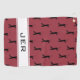Design features a repeating pattern of a solid black swinging golfer figure on a dark red background. A thick white band has two small matching red lines at the border and custom monogrammed initials (or short word) in black. Customize colours or keep as created. Colour of background and fonts are easily changed in design tool section. Email me at beachpausedesigns@gmail.com if you have questions about this or any of our designs!
