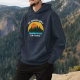 Beautiful family lake vacation hoodie featuring the pretty blue waters under the forest of trees and cool orange sunset. Cute camping trip matching hooded sweatshirts for your nature outing or wilderness group.