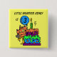 A little monster digs into the birthday cake on a cute and colourful monster theme birthday button that you can easily customize with the birthday boy or girls name and age!