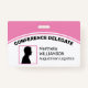 Modern, stylish CONFERENCE DELEGATE photo ID badge, showing photo template which is CUSTOMIZABLE, so you can replace with same-shaped photo or logo. The curved heading and placeholder name and company text are all customizable too for you to add your own details. On the reverse there is optional text. Available in other colours.
