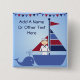 A sailboat, sailor, whale, and an area you can add text of your choice on a customizable Nautical button that matches our Nautical invitations, postage stamps, and stickers.