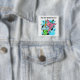 An adorable birthday button featuring a pink pig in a party hat with a giant size cupcake and an area you can easily customize with your own text!