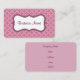 A dusty purple pattern decorates this business card. Customize this stylish business card to suit your needs. Add or delete information, change the font style, font size, etc...The design is from original art. Use this stylish business card for a spa, salon, small business, home decor, florist, nail salon, inn, resort, cosmetologist, preschool, hair stylist, jewellery, dentist, dental office, fashion, event planner, child care, daycare, bed and breakfast, boutique, bakery, etc...