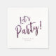 Faux purple sparkle glitter "let's party" script in centre, simple and stylish, great customized napkins for bachelorette party, birthday party, holiday party, home party, or any special occasion.