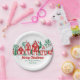 This cute custom real estate holiday paper plate is perfect for realty business marketing. Customize these Merry Christmas party plates with your company name under the red houses covered in winter snow and lined with festive green trees.