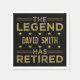 A funny retirement design that says 'the legend has retired', in stylish black and gold. Personalize it by adding the retiree's name.