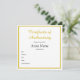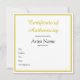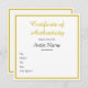 Customized Square Gold Certificate of Authenticity Card