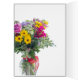 An exquisite bouquet of cut flwers in a glass vase with a white backround.