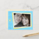 This cute save the date postcard features space to customize with your own photo image. Shown here in cream and blue with hints of yellow, this save the date invite has a retro scrapbook look.