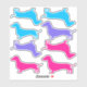 You are getting two small light blue, one small purple & one pink dachshund stickers & two large pink, one large purple & one large light blue dachshunds cut vinyl stickers.