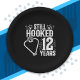 This fun 12th wedding anniversary design is perfect for fishing couples that have been married for 12 years and are still hooked on each other & love to go fishing! Great for a 12th wedding anniversary party to celebrate 12 years of marriage! Features "Still Hooked After 12 Years" wedding anniversary quote w/ heart shaped fish hooks with fishing graphic in a distressed vintage style design.