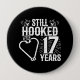 This fun 17th wedding anniversary design is perfect for fishing couples that have been married for 17 years and are still hooked on each other & love to go fishing! Great for a 17th wedding anniversary party to celebrate 17 years of marriage! Features "Still Hooked After 17 Years" wedding anniversary quote w/ heart shaped fish hooks with fishing graphic in a distressed vintage style design.