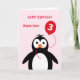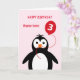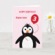 Personalize this third birthday card by adding the birthday girl's name on the front. The card features a cute penguin with a red birthday balloon on a pink background. There is a further birthday balloon inside