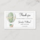 Les cartes de remerciement "Adventure attend" sur le thème de sexe neutre ou bébé garçon douche vous remercient avec l'aquarelle bébé volant avec une montgolfière verte.