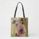 Cute Airedale Terrier and Green Flower Pattern Tote Bag