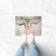 On a watercolor background, this fresco style painting of an adorable little goat sporting airplane ears and blowing a bubblegum bubble says Welcome (You can change this text) Goat Lovers Welcome Mat -