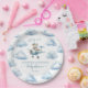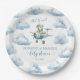 Add a delightful touch to your baby boy shower celebration with these charming paper plates adorned with a cute blue watercolor teddy bear flying on an airplane. These adorable plates not only serve your guests but also bring an extra layer of joy to the event. Explore this sweet design for a memorable and whimsical baby shower experience.