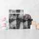 The name of this cute sleepy Japanese akita is on this great customizable Christmas wrapping paper is named Asia, she is a red akita, part American type akita and part Japanese type akita. Asia is a rescue dog and she loves being spoiled at Chritmas time, she looks very happy sleeping with her pretty christmas hat at a jaunty angle and covered in seasonal decorations, she loves to wear her red Santa hat during the holiday season. This cute akita picture gives this wrapping paper a Christmassy feel. This sleeping special akita looks so relaxed on this quality Christmas paper, it’ll look very original wrapped around a christmas gift for for someone who loves cute dogs and the akita breed. This is customizable Christmas gift wrap, you can personalize it with your own text. This image has been digitally enhanced to give it a grayscale effect.