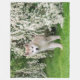 A young Alaskan Malamute puppy with a plush double coat standing in a grass meadow with a white flowering bush in spring. A cute dog photo taken by Katho Menden, this fleece blanket is a gift idea for dog and pet lovers.